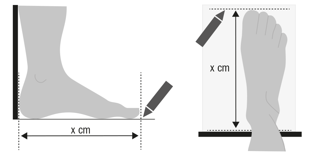 Pentru că picioarele se umflă pe parcursul zilei, îți recomandăm să le măsori seara sau după-amiaza devreme. Măsoară întotdeauna ambele picioare – acestea pot avea lungimi diferite. Pentru un rezultat mai precis, ideal ar fi să te ajute o a doua persoană.